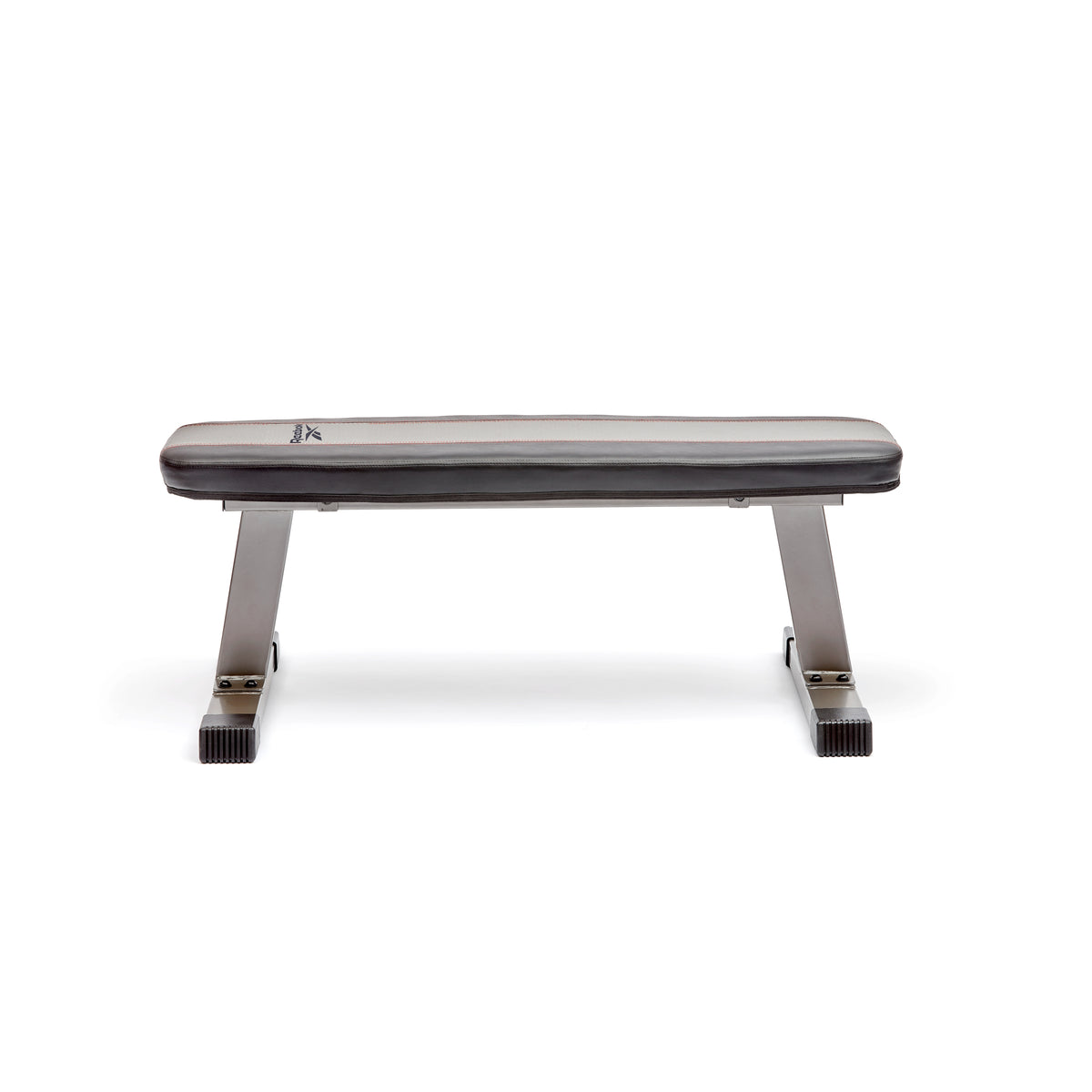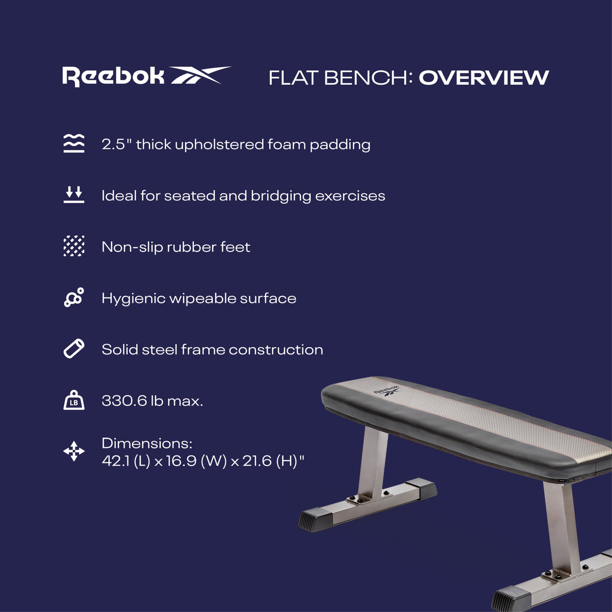 Solid in construction with a steel frame and wide back-pad, the Reebok Flat Bench can be used for a broad range of exercises.