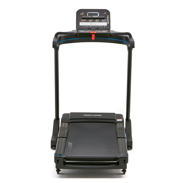 Fitted with an adjustable cooling fan to keep you comfortable whilst you train, the 300's console offers a host of functionality for both performance and comfort. Equipping you with quick speed and incline shortcut keys plus simple adjustment buttons, the Jet 300 has all bases covered for enhanced home cardio. Substantially built for dependable quality, the 300's high max. user weight of 308 lbs verifies the treadmills hardwearing design. Complete with a spacious running area of 59 (L) x 20 (W) in, the Jet 300 is easy to build with an integrated soft-drop folding mechanism and built-in transport wheels allowing you to train anywhere in the house.