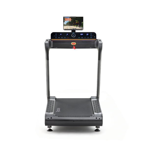 Stay informed via the sleek LED console and dial interface, providing real-time metrics including speed, time, distance, calories, pulse, and heart rate, empowering you to optimize your performance. Keeping you entertained throughout each run, the console also features a rotatable device holder, USB-C charging, and integrated Bluetooth speakers, combining to create an immersive experience to energize every stride.