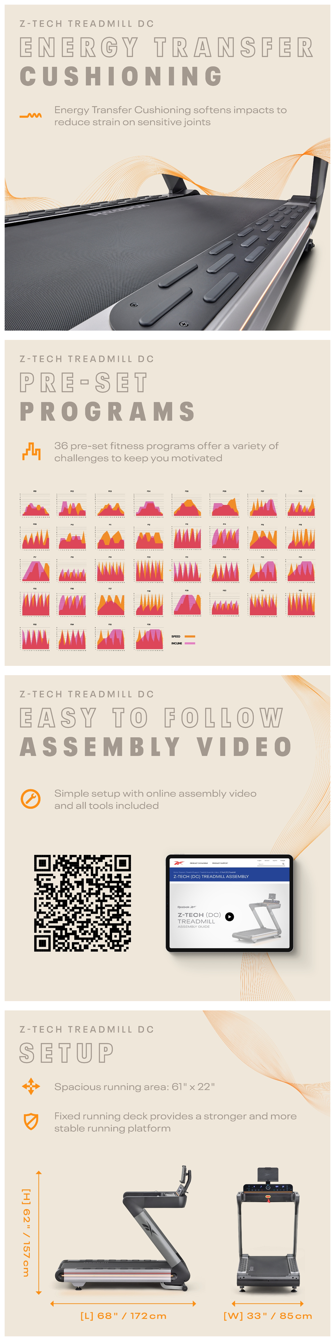 Step into a new era of home cardio workouts with the Reebok Z-Tech Treadmill - where design innovation meets ultimate performance for a run like no other. Discover the summit of home cardio performance - activate your energy and surpass your goals with the Reebok Z-Tech Treadmill.