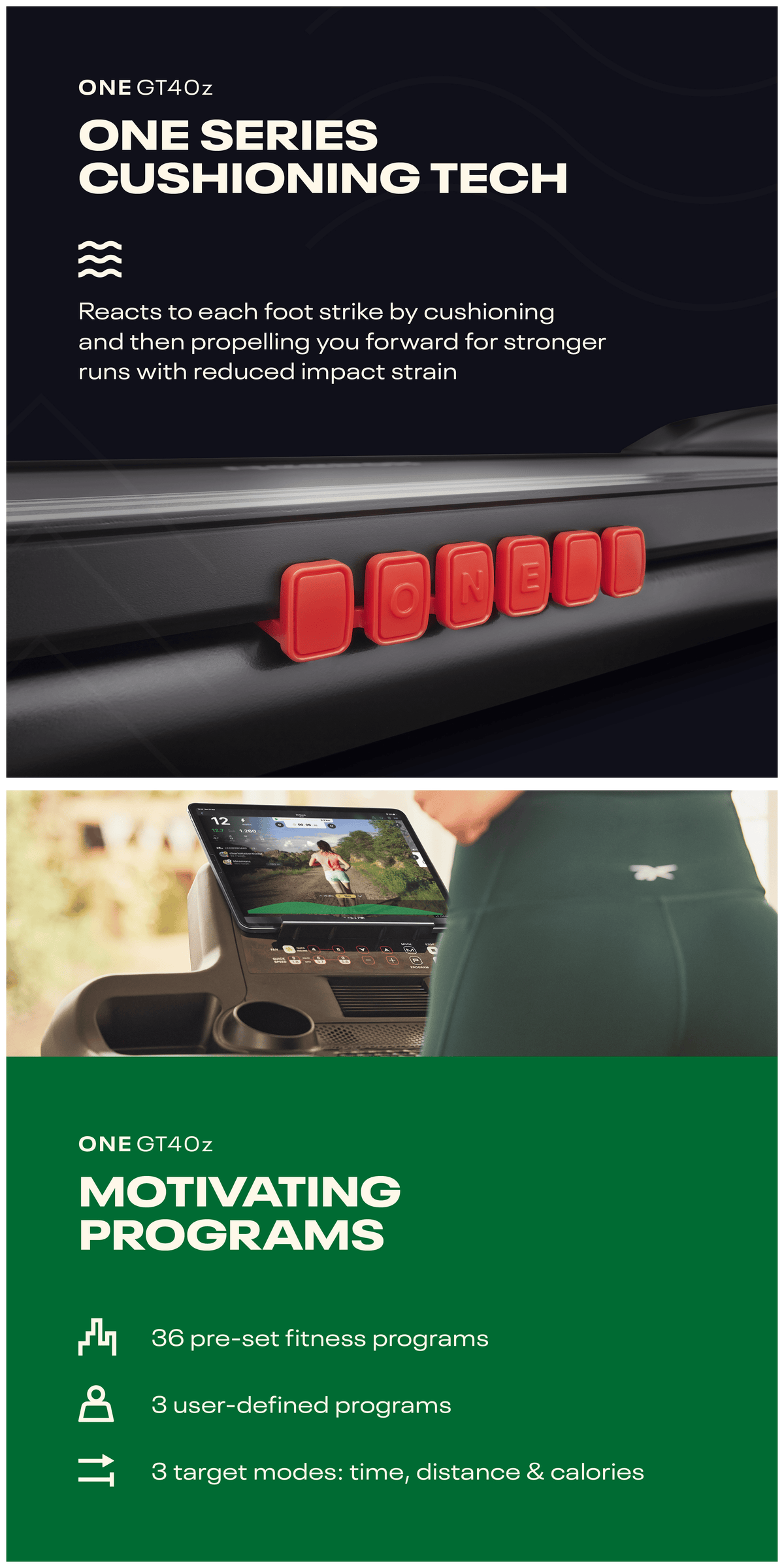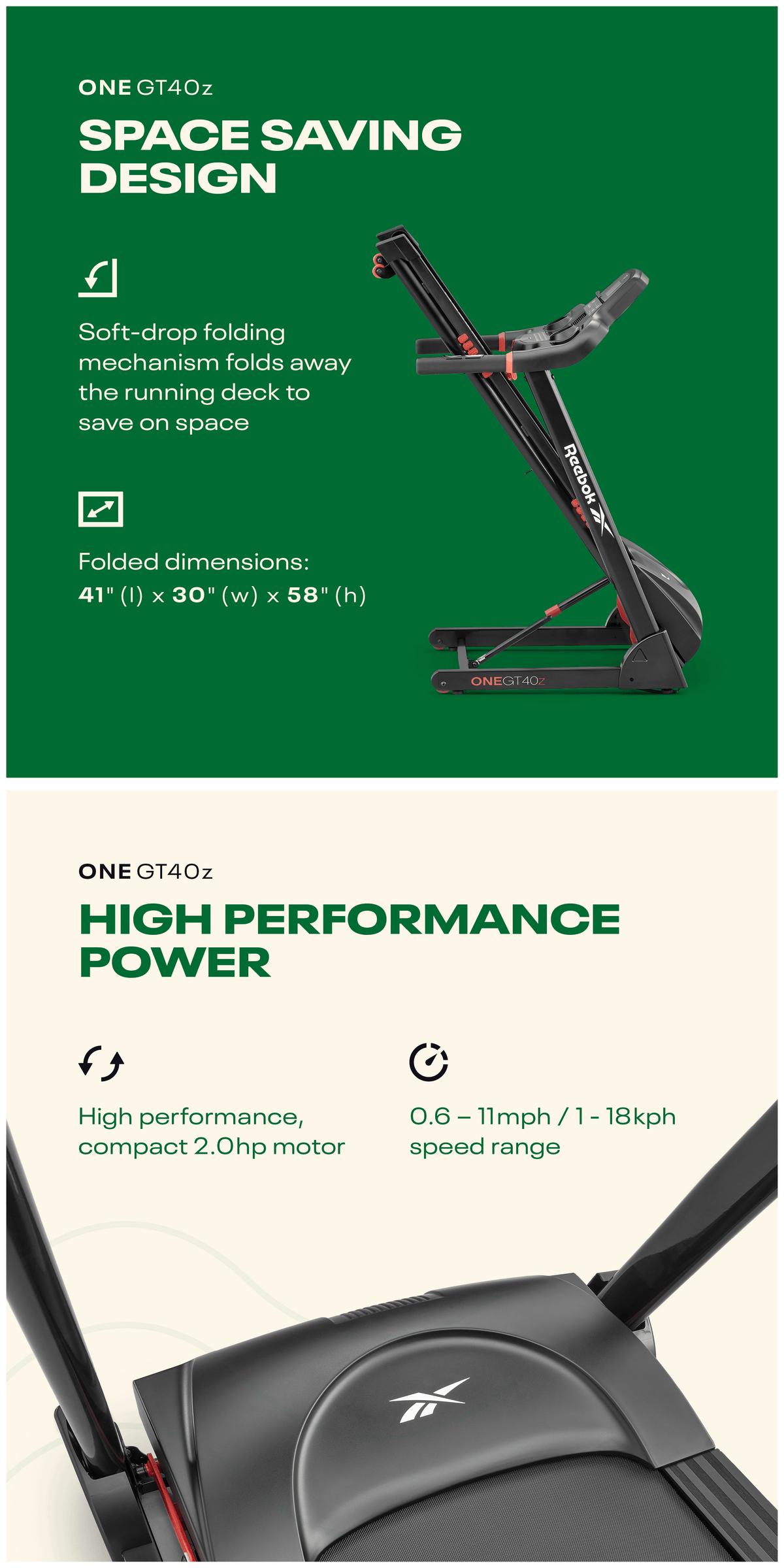 Powered by a durable 2.0 Hp motor, the GT40z has a speed range of 0.6 – 11.2 mph to take you from a gentle jog to a fast run. Equipped with 12 levels of easily controlled power incline, the treadmill combines both speed and incline to create a more challenging home cardio workout, making the GT40z ideal for all fitness levels.
