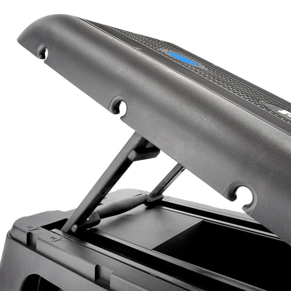 The upgraded surface makes it even better for stepping, jumping and lunging as well as sitting and lying on for weightlifting exercises. Fitted with built-in attachment points, the Deck allows you to hook resistance tubes to both the feet and backrest to further broaden your exercise options. Any number of additional fitness accessories can be incorporated into your Deck workouts to help you get the results you want. Smaller accessories can be easily stored away after use within the internal storage compartment. The Deck is lightweight and easy to move and store, yet solid and robust enough to stand up to the toughest of workouts. The twelve slip-resistant rubber feet will help absorb impact and ensure a solid, stable fitness platform.