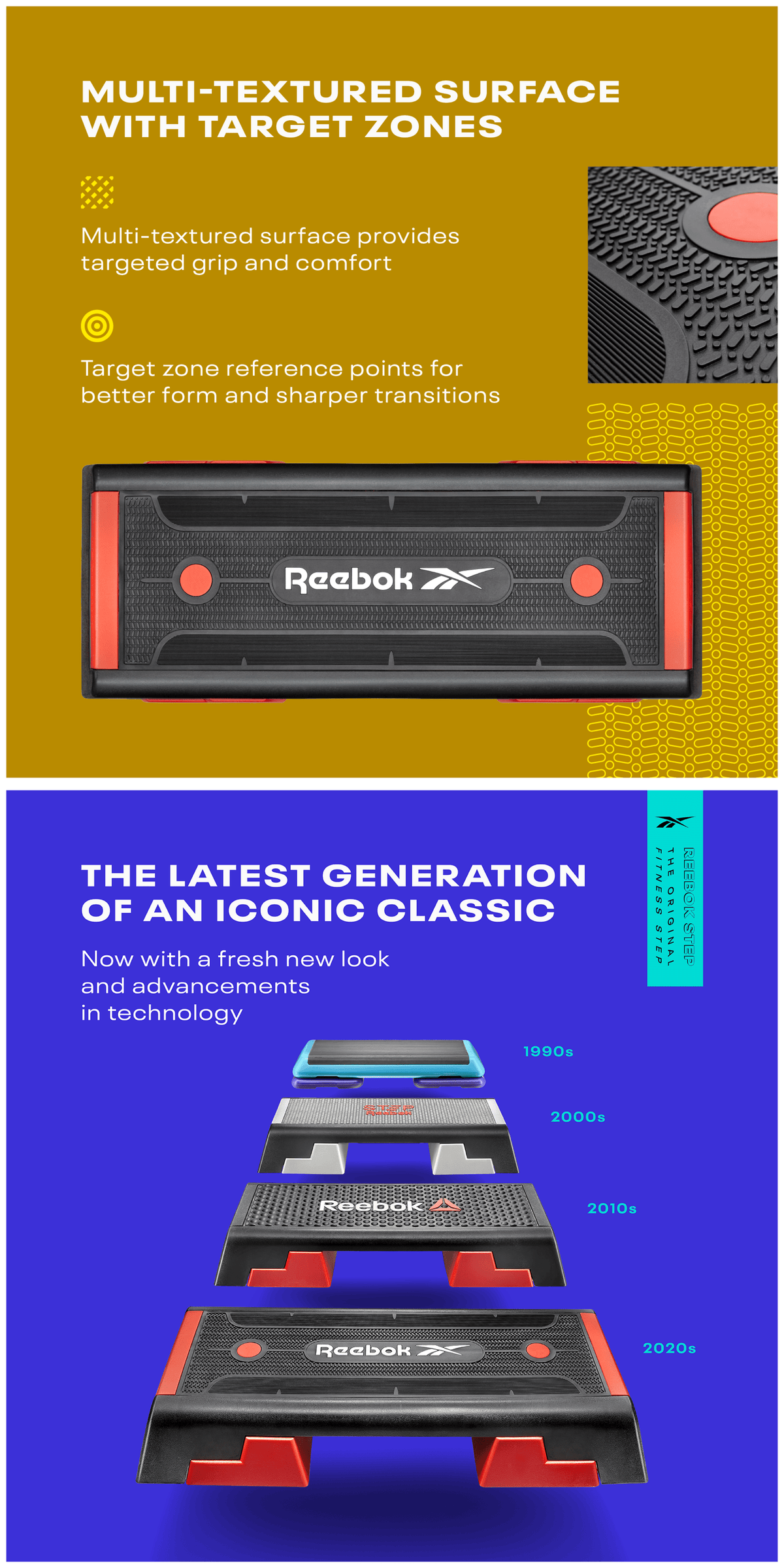 The original Reebok Step was first introduced to studios and health clubs back in 1989 as a revolutionary and highly effective cardio workout. It quickly became an international phenomenon, as millions of people from around the world used the Step to stay in shape. Now with a fresh new look and advancements in technology, the latest generation of an iconic classic brings with it superior functionality and the best user experience yet.